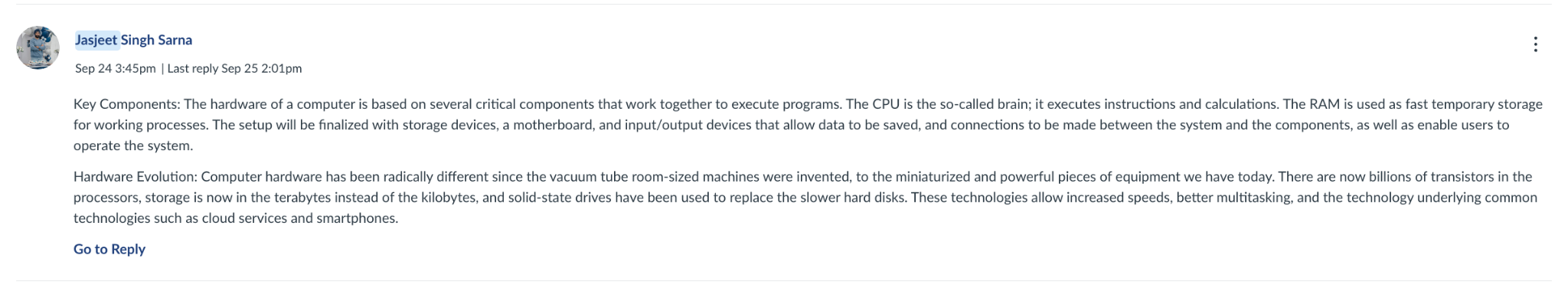 While writing about computer hardware, I got a clearer understanding of how each component plays a specific role in making a system function smoothly. Learning about the CPU, RAM, storage devices, and input/output hardware helped me see how these pieces connect and depend on one another to run programs efficiently. I also gained a better appreciation for how far hardware has evolved—from massive early machines to today’s compact, powerful devices packed with billions of transistors. This discussion showed how advanced storage, processing, and design have shaped the technology we now use every day, from smartphones to cloud systems.